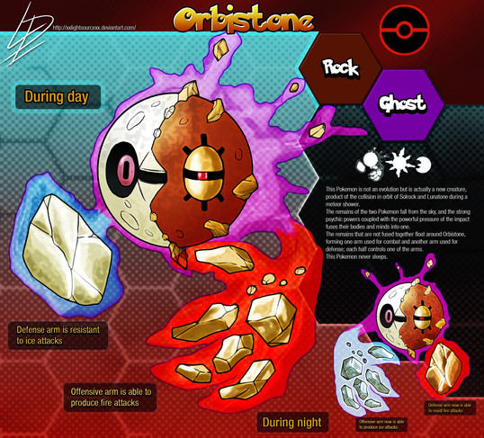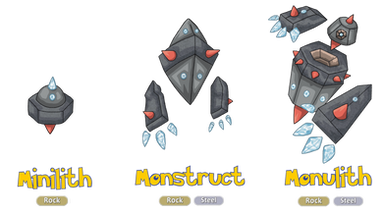 Shrotite: This Pokemon draws in so much energy, when born it finds two rocks to attach to it's body using magnetic fields. It is raised by it's fellows in rocky mountains, formed out of large, hard boulders.
