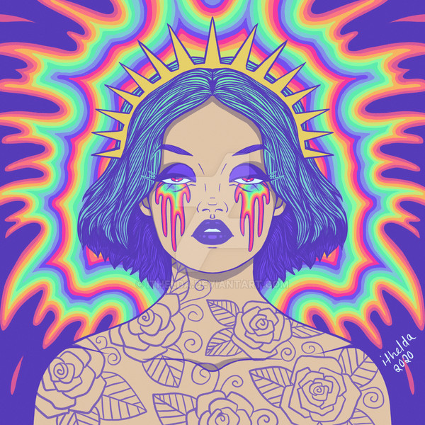 A trippy colorful semi self-portrait, drawn with ball point pens and sharpiesCheck it out in my society6 store: