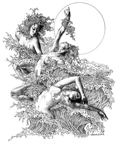 #blackandwhite #fantasy #mythology #nymph #river #siren #waterlilies #women