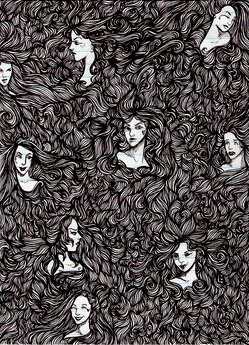 Heh. Interesting work with all that hair. Gives the piece a very stylized feel. Like a woodcut or something...