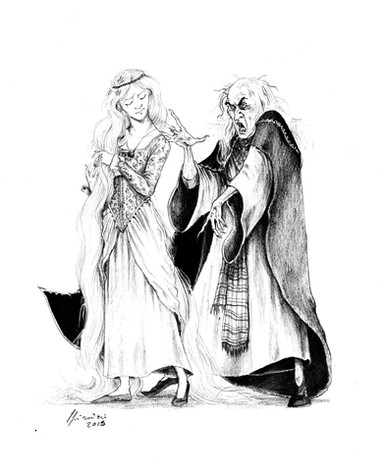 I love how simple the expression is on Rapunzel but it says a lot. And I love how evil the old lady looks! This is yet another great piece! I'm turning into a fan of yours!