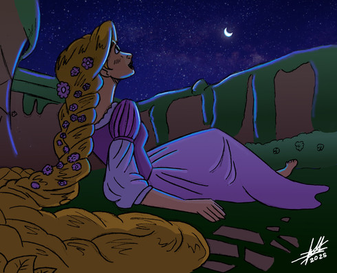 #digitalart #digitaldrawing #drawing #fairytale #fairytales #fantasy #illustration #lonely #longhair #pencildrawing #princess #procreate #rapunzel #ithelda
