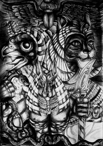 New Lineart from set."In early times Set was worshipped as the god of wind and the desert storms, and prayed to that he would grant the strength of the storms to his followers. Although he was always a dark and moody god, he was believed to be the ally of his brother and sister, Osiris and Isis, the counterpart to his sister-wife Nephthys, and the defender of their father, Ra.