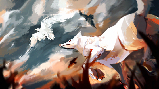 #digitalart #digitalpainting #illustration #landscape #painting #photoshop #sky #wolf #art #autumn