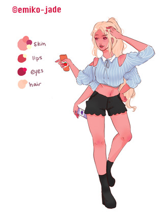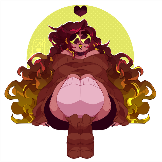 Body Type: Plump, pear shaped body with big hips and chest. Little bit of a pudge on her belly
