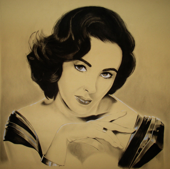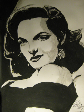 I found a picture online of Elizabeth Taylor and drew 1 inch boxes on it to make a grid, then I doubled the size of the boxes to make a larger grid for a larger picture.