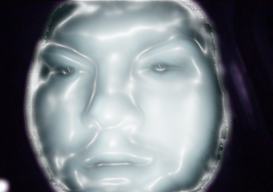 This is ME. weird.It was done by using a latex and plaster mold that was put on my face. It took 45 minutes to sit on my face, while i breathed through a straw. brutal. Theres no hair because we had to use Vaseline to keep the latex from ripping my hair out when we removed the mold.
