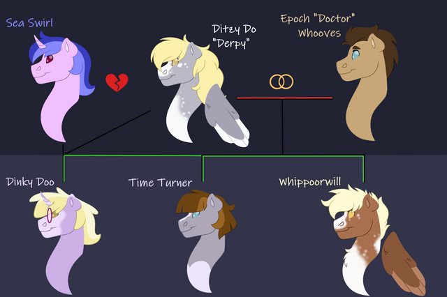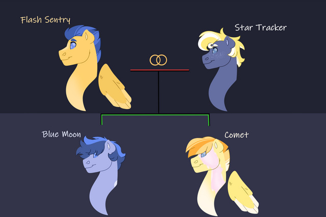 It only took a few months of their reckless (and usually unprotected) behavior for Night Glider to start feeling the early symptoms of pregnancy. She was such a logical mare, and had yet ignored the fact that their actions could lead to such an outcome. Glider debated on it for a long time, but eventually told Double Diamond, who was anything but interested in even being in an official relationship, much less raising a child. Fortunately, Night Glider had no problem admitting that she also wasn't ready to have a foal of her own. Night Glider carried the child to term, without Double Diamond's help (which didn't bother her), and gave the baby up for adoption immediately after being born. The only thing she said to the baby was "You'll find an amazing family that will give you all the love you deserve, but that family just isn't with me" before sending them off in the arms of a nurse. Double Diamond and Night Glider distanced themselves from each other and what remained of their friendship fell apart quickly, now having new memories together that they would rather forget.