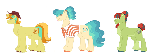 Meet Riverside Iris, the only daughter of Cattail and Torx McColt! Growing facial hair in her teen years, Iris was seen as a bit of an ugly duckling in her hometown. She took that as a challenge as a teen, ready to pummel any bullies who dared tease her. And she did get in quite a bit of trouble growing up, especially since she had no issue with using violence to shut up ponies who made fun of her. Her father, a bit more of a peace-maker than a fighter, never approved of his daughter's methods, but Mama Torx was more than happy to encourage Iris to knock some heads if it meant the message was heard. Now that she's an adult, and it's not as practical to just beat up on other grown ponies, Riverside Iris struggles to communicate when angry. She prefers to put her negative emotions into her work, which there's usually plenty of as a mechanic! After Cattail recommended she go and learn a bit about communication at the School of Friendship, Iris has started taking classes along with fixing anything Ponyville needs, whether it be on the pipes in the spa or particularly stubborn machinery at Sweet Apple Acres.~~~~~~~~~~~~~~~~~~~~~~~~~~~~~~~~