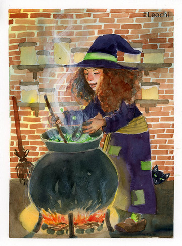 Another Witch Apprentice piece.medium: watercolors, prismacolor pencils ankd ink on watercolor paper.