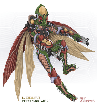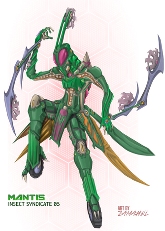 The Insect Syndicate's customized design over pre-existent Alpha-Omega series armors can be noted for its biomimesis and inspiration from insects, arachnids and other arthropods (despite the name, Insect Syndicate, not all of its members are named after insects, though the majority is).