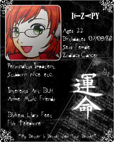 Nice ^^ Whenever I get the time, Imma do one of these o: