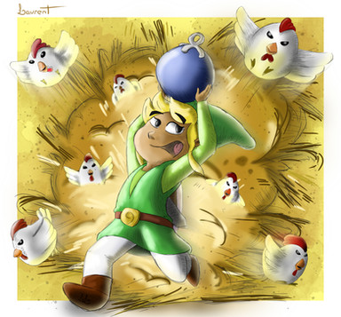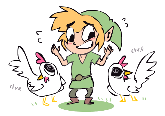 uh oh, Link's gonna get it now XD I love both Link's and the chickens' expressions, it's pretty obvious who's the threat here