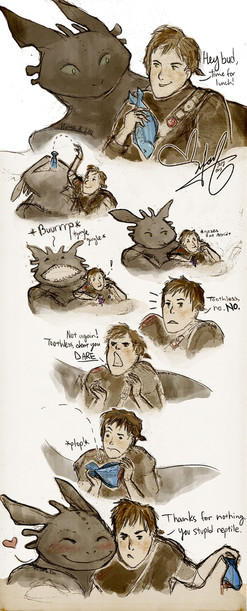The expressions. Priceless. It's just too cute. Toothless looks so innocent.