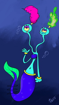 A race from the Nuova universe. They're a semi-aquatic race that will mate for life, and when they do, they will merge with their partner, becoming permanently conjoined. They're a very friendly race with an extremely high capacity for empathy, a trained designed to help ensure that they will choose a partner that they can spend their life with.Edit: Made a minor update to the design to just give it better linework and colors.