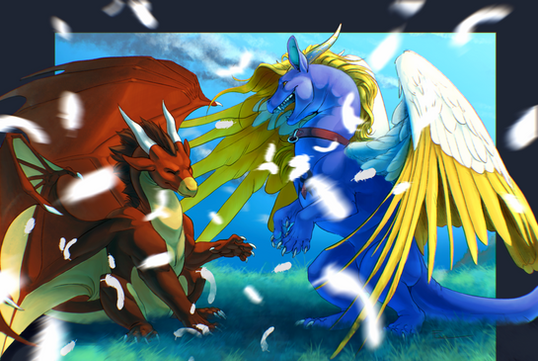 Fr : Yay, nouveau dessin ! 8'D C'est assez particulier, vu que c'est ma première collab (après 5 ans de dA) ! Devinez avec qui j'ai fait ce dessin, vous avez 10 secondes ! *PAF* Bref, ce fut une joie de dessiner avec FireMoon9 !Et cette "Catapoule" ? Un délire entre moi et Firy, lors de nos vacances ensemble ! %D On a ensuite décidé de le dessiner ! XD