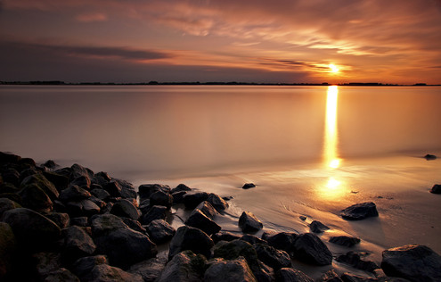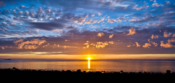At first you notice the colours and the richness of the sunset itself, then the perfect reflections of the cloud in the water, and the stunning highlights of the sunset on the tips of the rocks.