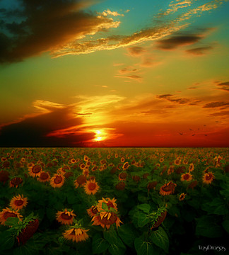 Wow another beautiful photo, the sunflowers remind me of a red poppy who has turned yellow. I love this sunset picture.