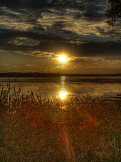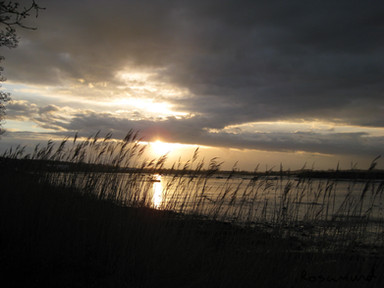 Take my breath away! This is ... simply gorgeous. The vivid colors, the speckles of sunlight across the water, the grasses turned a golden-reddish green set against the gray-blue water ... WOW!! Tremendous piece.