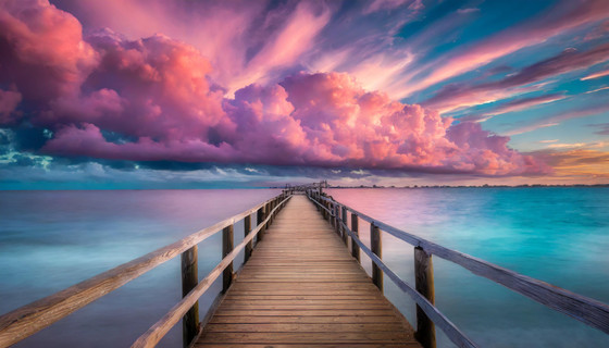 Awesome photo! I feel like I could almost walk down to the end of the pier and finish watching the sunset.