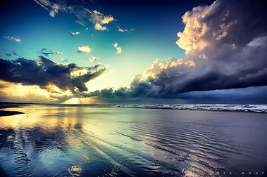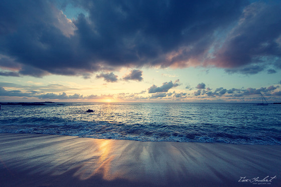 it looks like the sand is wearing the ocean like a blanket or a cloak! I really love the water's color