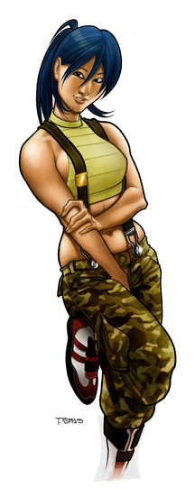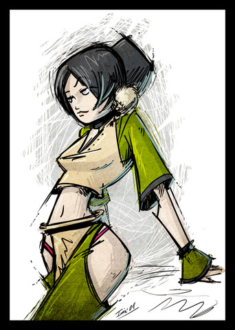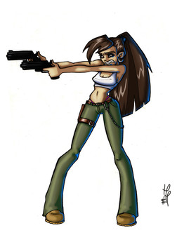 This pinup really took me 2-1/2 hours since the sketch until the color adjustments. I was trying something more traditional to the american comic style.Related content