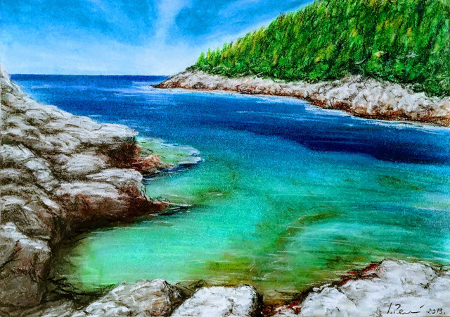 #blue #croatia #croatian #drawingpainting #forest #green #island #landscape #landscapes #nature #naturelandscape #naturepainting #ocean #paintings #pastels #pine #pineforest #seascapes #seashore #shore #sky #softpastel #stone #traditional #traditionalpainting #trees #turquoise #waves #white #classicpainting #art #boat #rocks