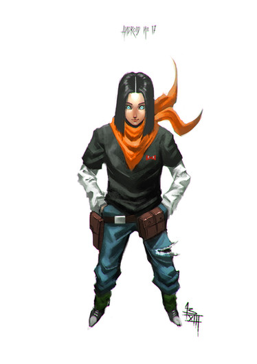 I think this is a female android 17, because I'm pretty sure that's a breast under his two arms.