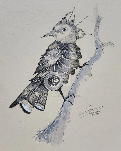 #robot #cyborg #bird #sketch #sketching #animal #pen #draw #drawing