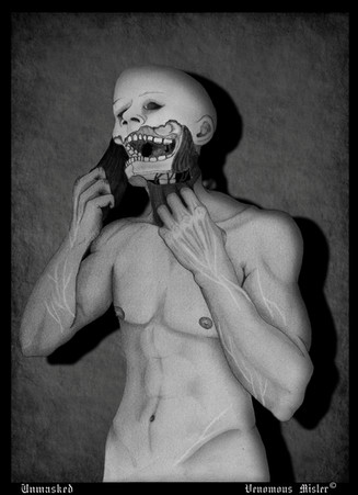 a very chilling face the man has. i like how you stayed away from the one half dark and one half light idea and meshed it together rather nicely. good job and good luck in the contest!