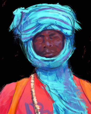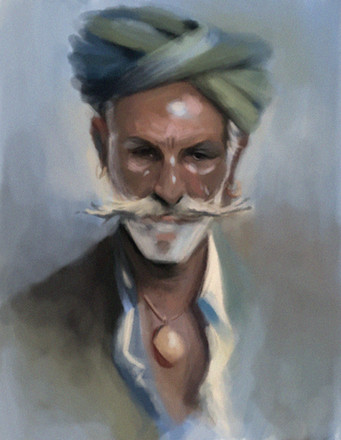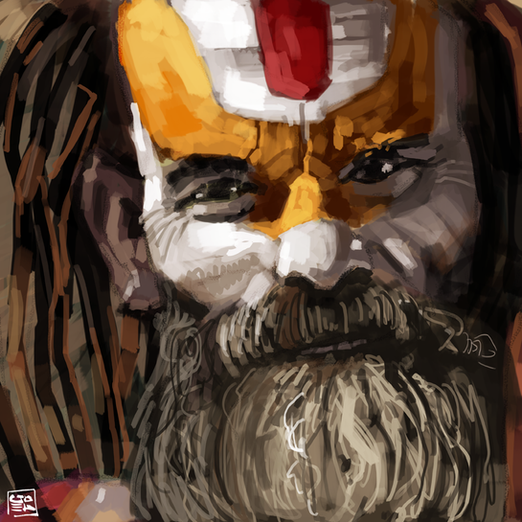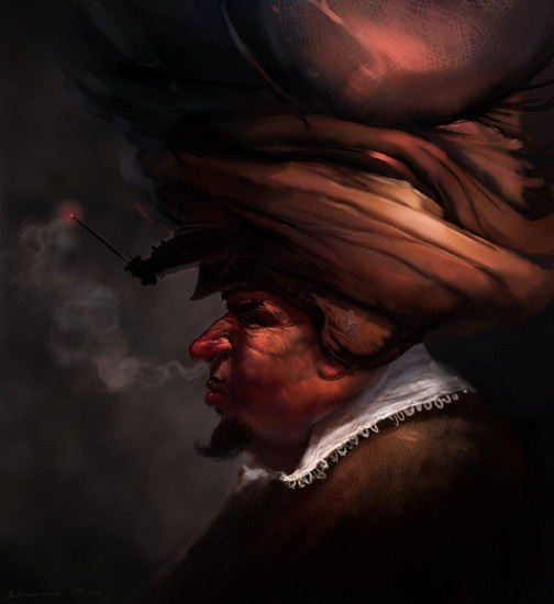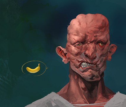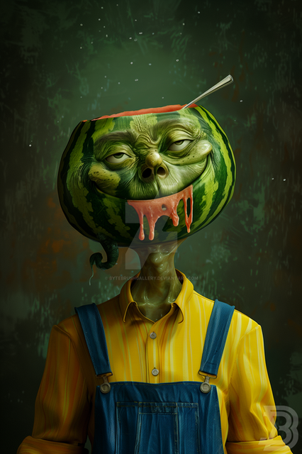 I love the painterly look and feel of this. The lighting on his head is awesome. I don't understand the watermelon but it totally make the piece!