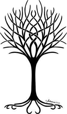 After having searched high and low and everywhere in between I could not find a tree of life that I liked or that looked simple enough without being to simplistic.Finally I decided to draw up my own. The original reference for this was a necklace on pyramidcollection.com but that was inside a circle and had no roots. This is what I finally came up with and I'm in love with it.
