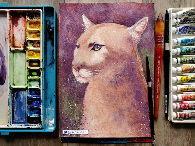 #animal #lion #mountain #mountainlion #painting #prismacolor #puma #watercolor