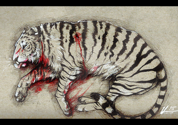 This is wonderful. Β I love the graduation from realism into the abstract and the use of strong white line in the whiskers and outlines. Β A really beautiful piece.