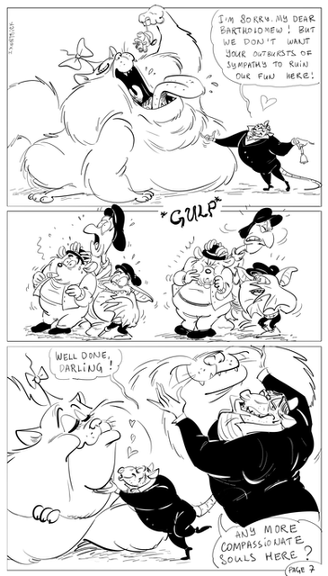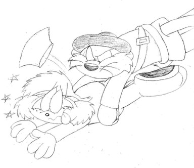JASPER! Hehe... Sorry, I had to. The first name that Tom went by in the first Tom and Jerry cartoons. The lady with the broom reminded me of that. Very cute and detailed style on the cartoon cats. That is pure professional illustration quality right there.