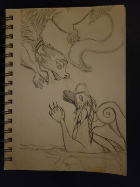 Mmmm... maybe you can do better, but I like the idea. Guess I never thought about a spirit or ghost story illustration, but it is a cool idea The brightness of their bodies adds a magic touch to the picture, and the kiss says all about the story they had shared when they were alive...