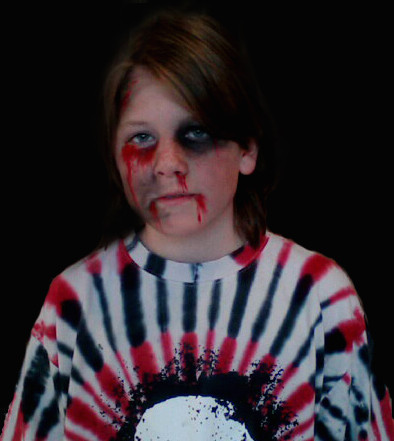 The background is ominous, and the blood is so at odds with the life on your face. It's a glorious contradiction.