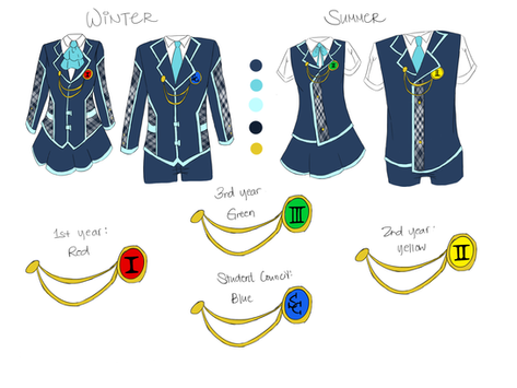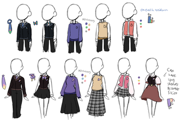 The basic uniform for Du-Bay Academy students!Students are not required to wear the provided uniform. They may substitute the pants/skirt with their own as long as the colors are not wild (patterns are okay too). Socks and shoes should be business casual, but they can break the rules and wear sneakers or any other shoes they want if it makes sense in character (they are teens after all).