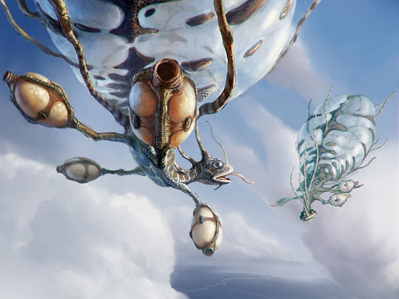 it reminds me of "The Black Company" - there you could find floating whales over the sands of terror desert