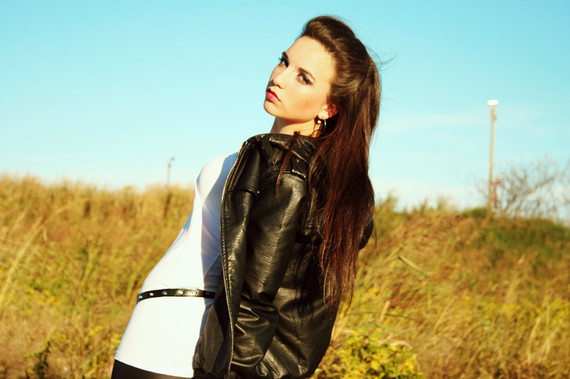 I love that the photo has a very retro feel to it, while the beautiful woman is so hip and modern!