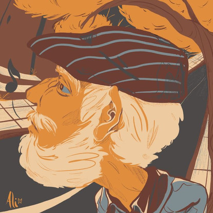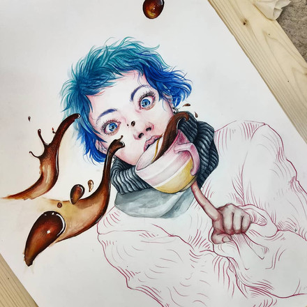 After seeing a similar illustration of a bear holding a coffee cup, I've been asked to remake it into a wolf and add a few details to match the person such as the custom coffee cup and earphones.