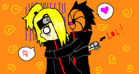 OMG every time i've ever seen one of thsoe cutesy pics of tobi giving deidara a clay something or rather