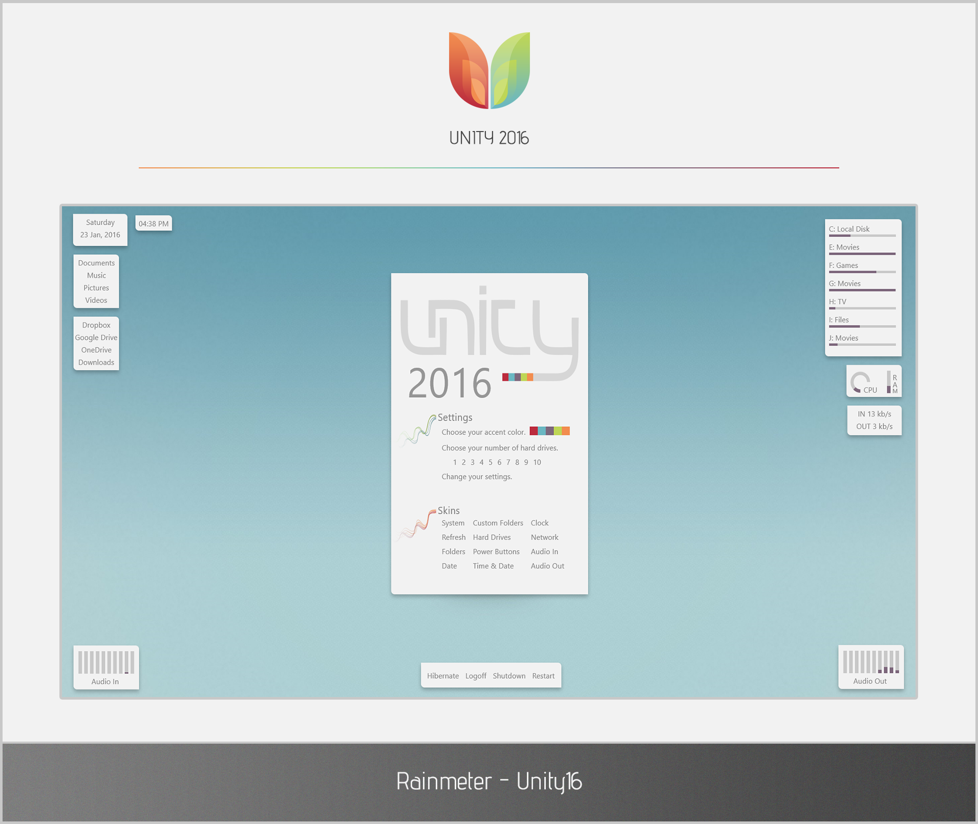 A simple yet cool theme, feel free to mod any way you like.New Update, fixed RAM usage bar to show amount used instead of amount free.