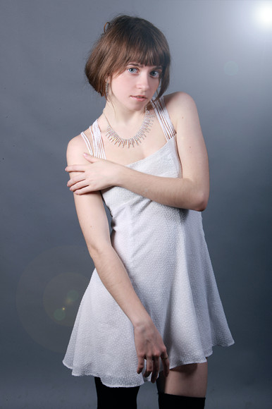 Perfect background and light, amazing dress, gorgeous girl.
