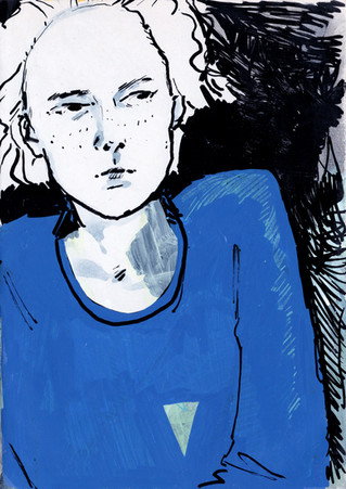 Another semi-portrait with a diary-like text attached to it with my thought and feelings about gender and swimming:"Every Thursday I go to the swimming pool with the kids I take care of. Because of the rules, I can't wear my bathing shorts with the jungle pattern and my short hair loose and sports bra like top. Instead I'm forced to wear a bathing cap and a swimming suit I borrowed in order not to get kicked out. While I prefer to wear men's clothes, I've come to love going to the swimming pool because I finally get to look like a woman and fit in with everybody else. For a small period of time, I don't have to worry about what other people think when they see me. I don't have to think about them judging me based on my gender expression and how I look. Even if I dress as a guy, my body isn't that of a man, so I fear that people will look at me as strange or wrong or less of a woman. I don't care about being less of a woman, but I care about being less of a person and I care way too much about what other people think. So I like when I swim, because I feel just a tiny bit more free to be me."