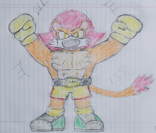Kyrogk is definitely ferocious, ESPECIALLY in the boxing ring! This lion will stop at nothing to take down the competition and take the belt! Things are gonna get tougher now that he's here and will give everyone a run for there money!Kyrogk the Lion is the OC of my bud