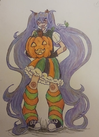 but this is so cute <3 I love how Elixir looks~ CB The pumpkin hearts are a very quite addition there XD Also, this is neat for markers 8D Nice job on the lines in the background <333 This rocks! I love it, thank you!~