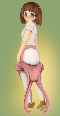 A commission fromΒ MyDLSecretLife Β of his character having just a bit of trouble getting her pants on~I've always liked this idea and did try to draw it once a long time ago. This one came out much better ^^ And still in time for Butt Month!