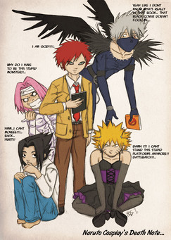 From a my sister's idea.I'm sorry to drawn Sasuke as L ( L is my Death note favourite character, while I hate Sasuke