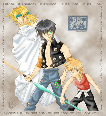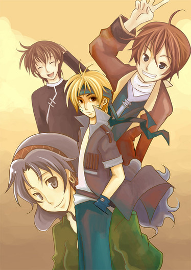 Son Goku, Genjo Sanzo, Cho Hakkai, Sha Gojyo and Jeep the white dragon from Saiyuki series, Kazuya Minekura.